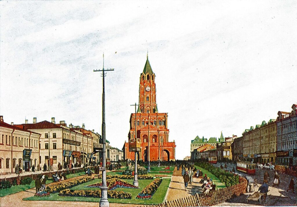 Сухарева башня и сквер посреди Садового кольца. ADcity 5 лет назад Сухаревская площадь, 1930 год. Credit — Телеграм-канал «Старая Москва»