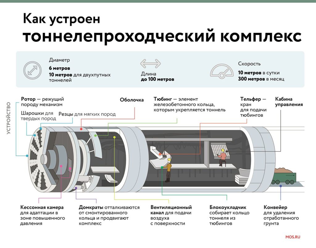 Современные комплексы могут работать в самых сложных геологических условиях, в том числе в неустойчивых породах. Средняя скорость движения щитов сегодня — 250-300 метров в месяц, средняя стоимость — 13-15 млн евро.