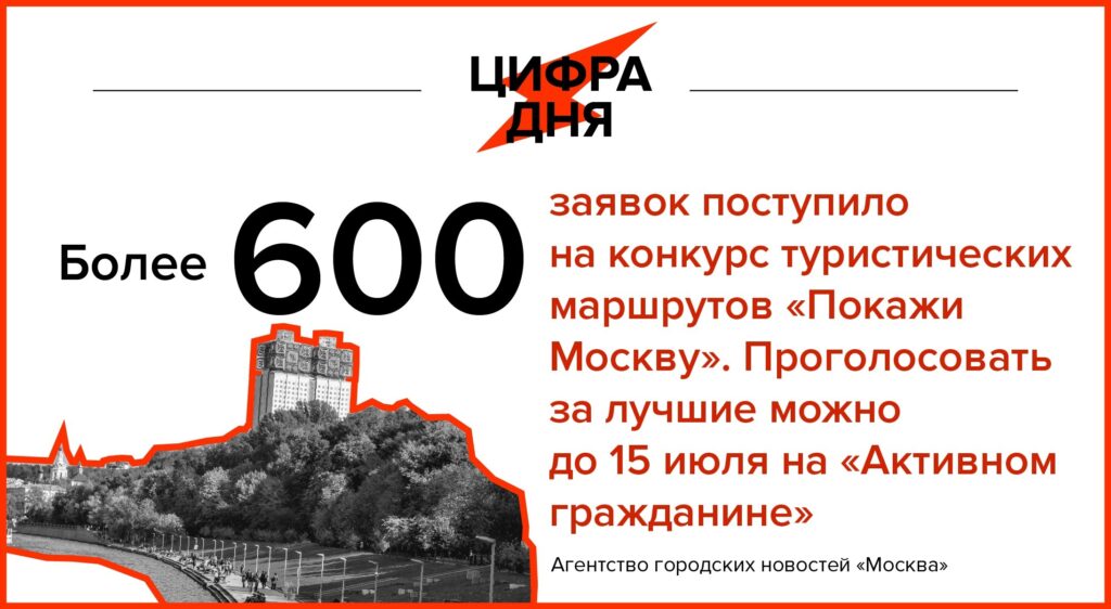 Знаете интересный туристический маршрут? ADcity 1 год назад Поделитесь им до 15 июля на «Активном гражданине». Подробности на цифре дня от «Агентства городских новостей Москва».