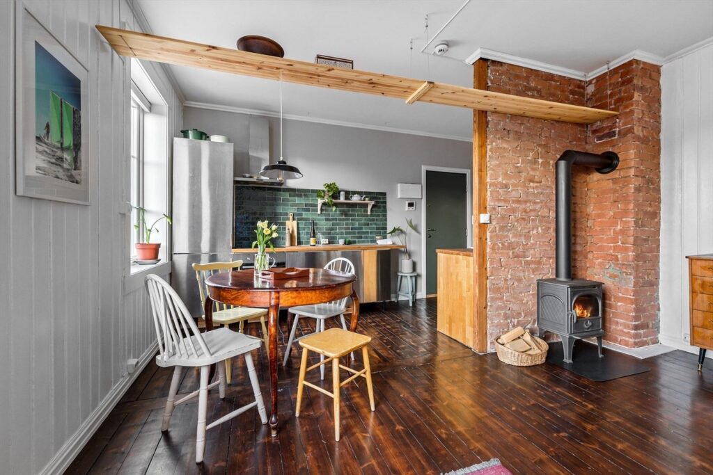 Интересный интерьер квартиры в Осло 33м2. ADcity 5 лет назад Зонирование пространства визуально не уменьшает его. Зона спальни отделена рейками, кирпичная стена добавляет уютного шарма.