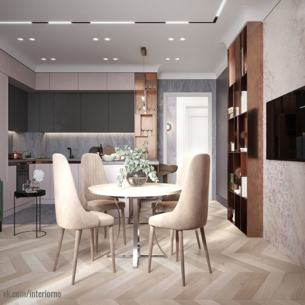 Кухня-гостинная. ADcity 3 года назад Перед нами кухня-гостинная в интересном цветовом оформлении, в теплых тонах которые придают кухне нотки уюта и гармонии.