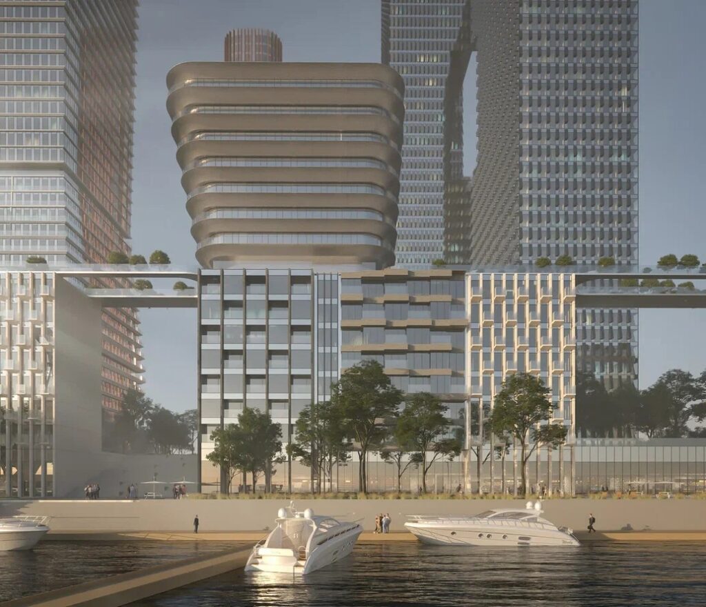 Главный архитектор Москвы Сергей Кузнецов отметил, что уникальным будет и благоустройство территории. «На площади свыше 25 гектаров, что почти в два раза больше “Зарядья”, появятся парки, аллеи и скверы, а в прибрежной зоне — искусственная река, понтонный бассейн на открытом воздухе, лес с арт-объектами на набережной, плавучие бани, сухой фонтан и детская площадка с водным оборудованием», — рассказал он.