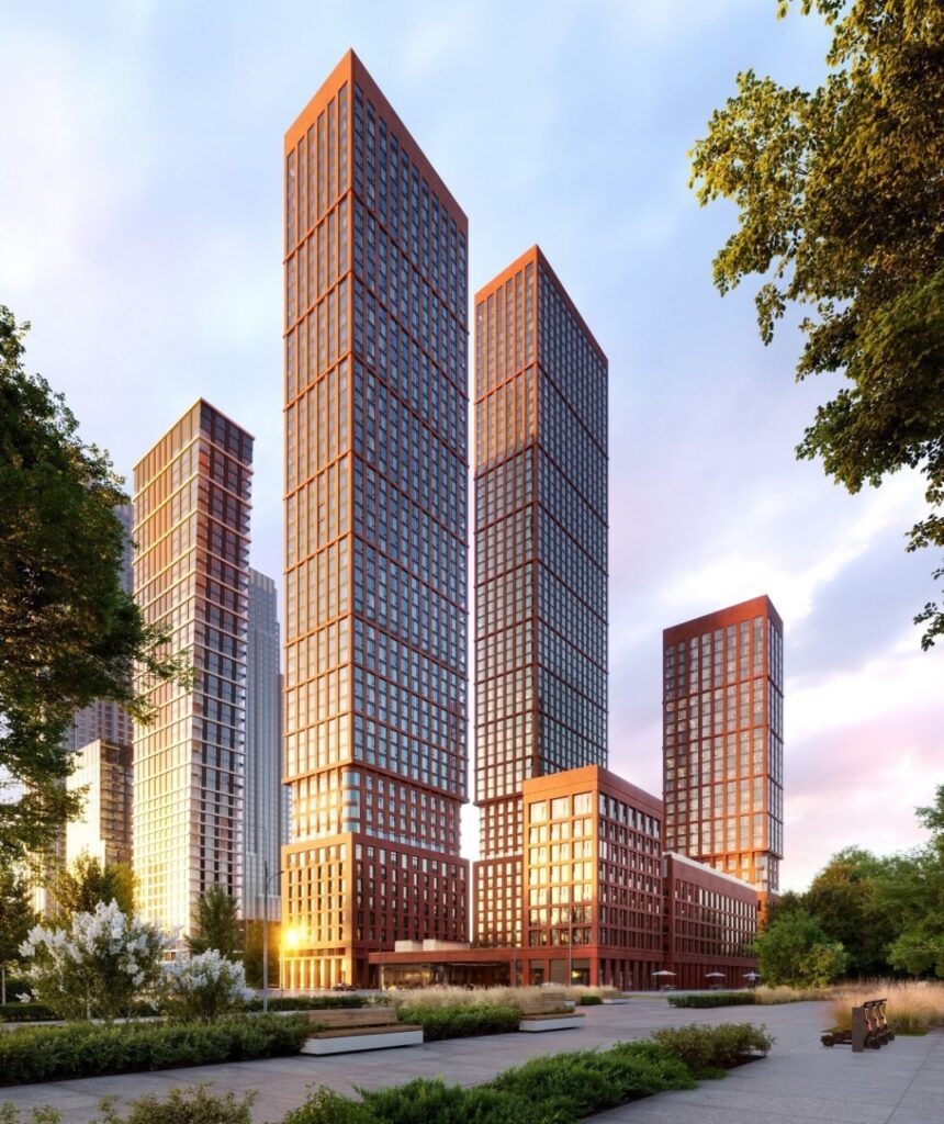 ▪️Общая площадь комплекса из пяти домов разной этажности составит 99,5 тыс. кв. м. Квартал будет включать две жилые башни, одна из которых – более 200 метров – станет самым высотным новым проектом в Можайском районе. Во вторую очередь также войдут два дома высотой 21 и 31 метр и один – 99 метров.
