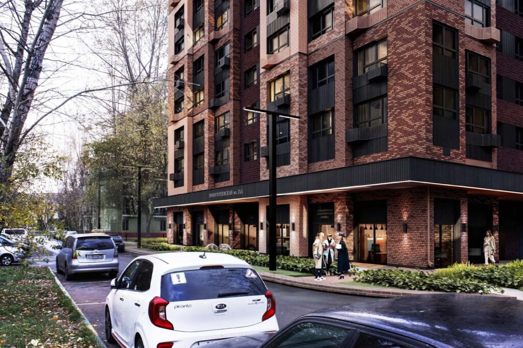 Первый этаж отведут под общественные помещения, входные группы остеклят. Фасад будет сделан многоступенчатым и украшен клинкерным кирпичом и оцинкованный стальными кассетами.