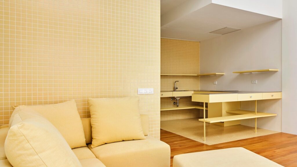 Arquitectura-G completes sunshine-yellow Barcelona apartment for «nuclear family»