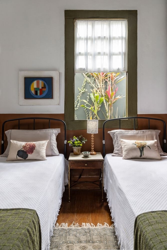 Элоиза и Леонардо, имеющие тесные семейные связи с городом Каламбау (Президенте-Бернардес, штат Минас-Жерайс), подумывали о жизни в сельской местности, но поняли, что городская жизнь будет более комфортной и практичной. После четырех лет поисков дома на главной площади они нашли подходящий объект и обратились в студию. Эти люди, склонные к участию в процессе и внимательные к деталям, ценят ритуалы благополучия и привязанность, что послужило ориентиром при создании гармоничной обстановки, наполненной воспоминаниями.