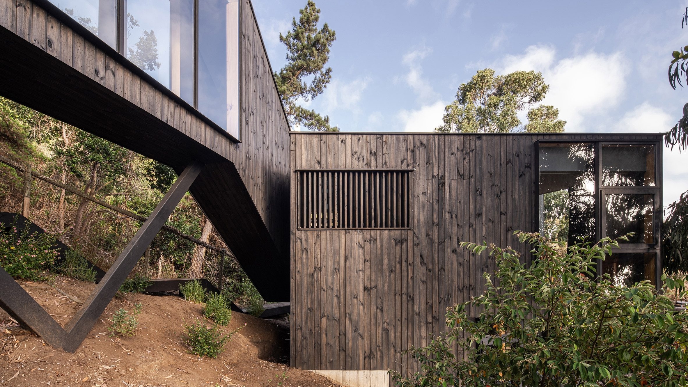 Чилийская студия Ignacio Correa Arquitecto завершила проект «Дом на трёх высотах» в Чили, который представляет собой два здания с деревянной обшивкой, соединённых тонким мостиком с застеклёнными стенами. Дом расположен на поросшем деревьями склоне холма в Сапальяре, прибрежном городе в чилийском регионе Вальпараисо.