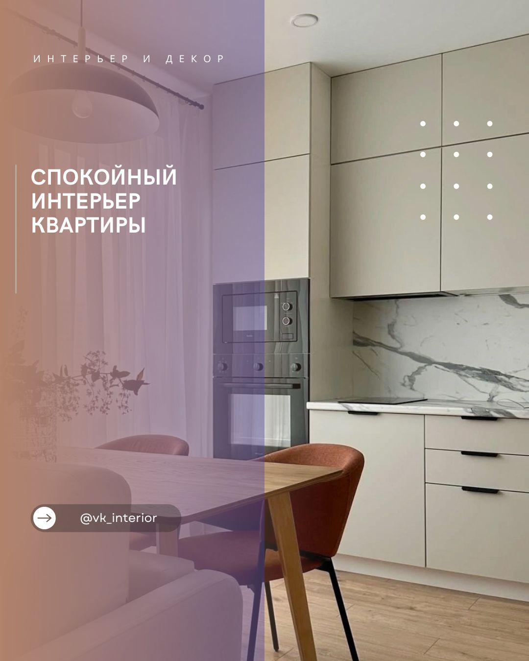 Интерьер получился спокойным, выверенным и очень «жилым». Светлая база здесь работает как фон для фактур и форм: матовые фасады кухни, теплое дерево обеденного стола, мягкие линии мебели.