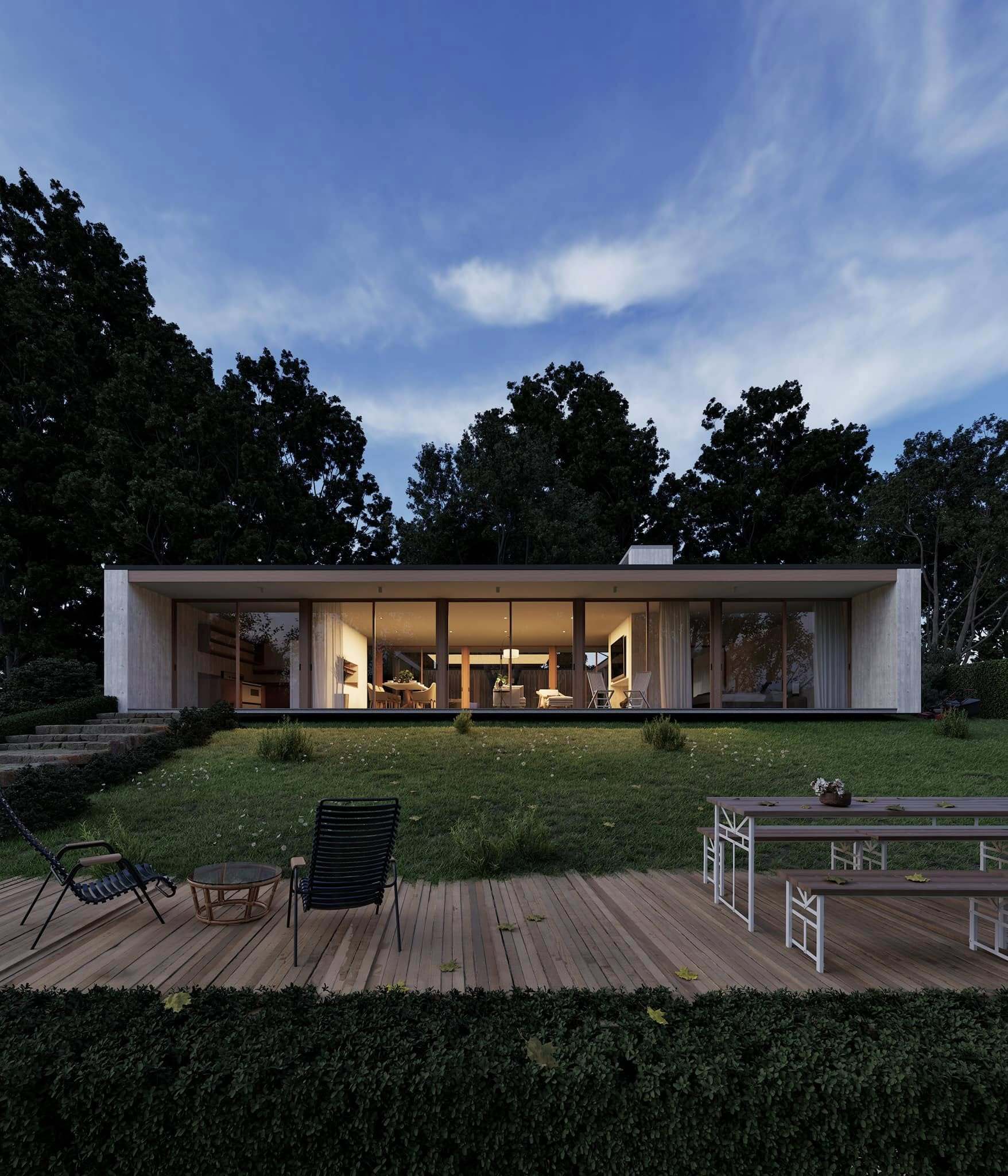 Lasha Baramidze Different daytimes for the Eliot Noyes House 1954 With different HDRIs rendered in Twinmotion 2024.1.2 without Ai and post-production Other assets from 3dsky, megascans, TM library House from skp warehouse