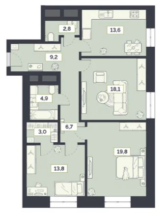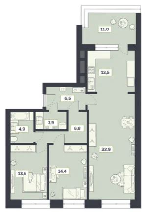 Типовость планировок выражается в повторяемости модулей, стандартных пропорциях помещений и отсутствии гибких сценариев использования пространства. Квартиры проектировались как унифицированный продукт — без попытки создать разнообразие или архитектурную и функциональную иерархию.