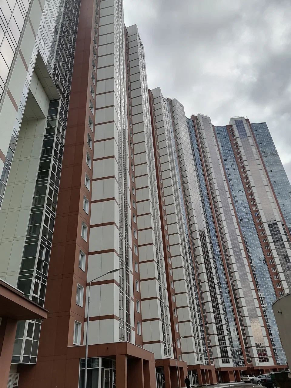 Архитектура комплекса слабая и вторичная: фасады плоские, без пластики и масштабирования, ансамбль не считывается как цельный — корпуса существуют разрозненно и не формируют выразительного силуэта. Работа с первым этажом и общественным фронтом фактически отсутствует, среда не поддерживает ни пешеходный сценарий, ни визуальный комфорт.