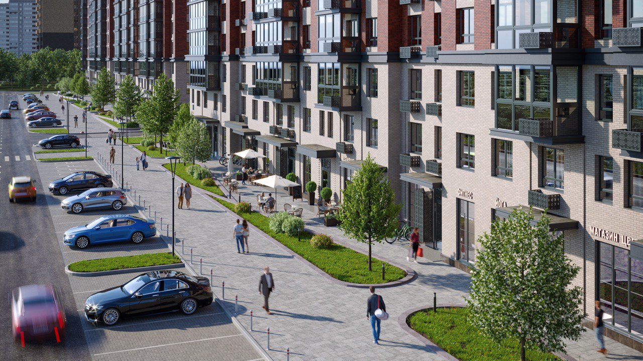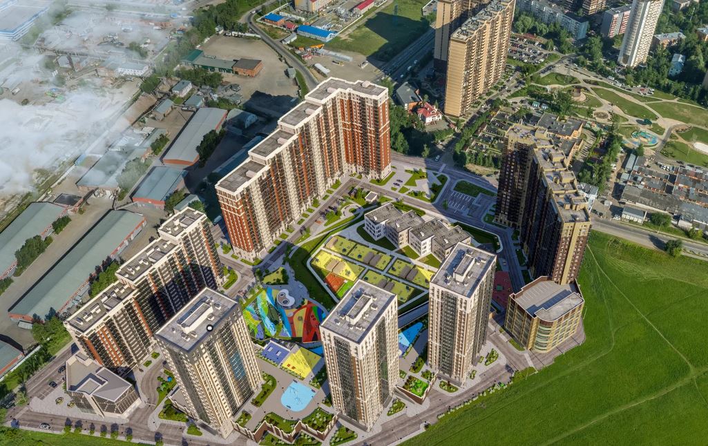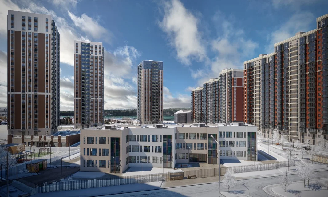 Жилые дома высотой 19–25 этажей выстроены по периметру участка, образуя плотное кольцо типовой застройки. Пространственная организация не демонстрирует признаков осмысленного градостроительного проектирования: отсутствует работа с иерархией пространств, масштабом среды и визуальными осями. Проект фактически воспроизводит устаревшую модель уплотнённой застройки без попытки создать полноценную городскую ткань.