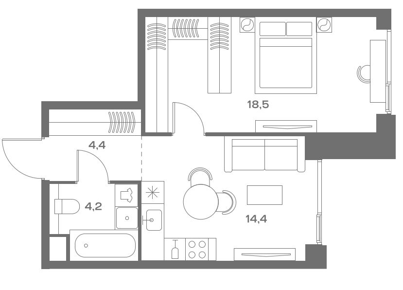 Локация объективно сильная: район Аэропорт, пешая доступность метро «Сокол» и МЦД, сложившаяся городская ткань. Однако заявленный бизнес-класс не подтверждается градостроительной логикой. Высотность до 35 этажей и высокая плотность при значительном количестве квартир на этаже (до 13) формируют ощущение перегруженности. При таком масштабе застройки проект ближе к плотному городскому кварталу массового сегмента, чем к камерному бизнес-классу.