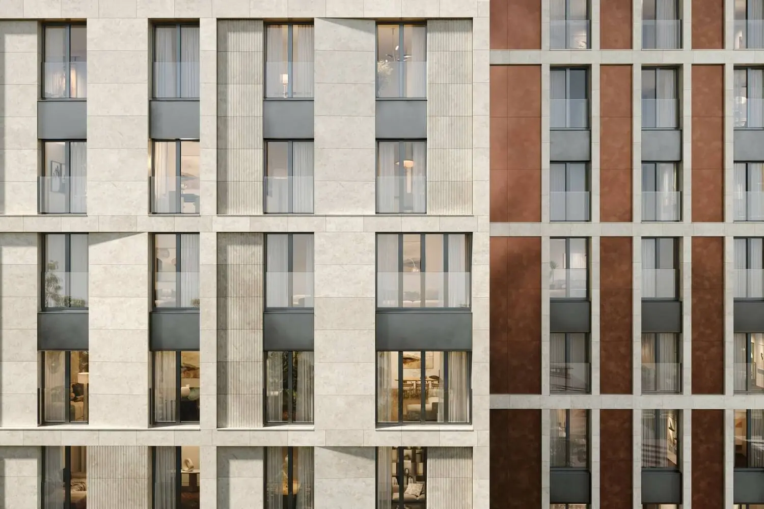Фасадные решения сдержанные и аккуратные. Цветовая гамма нейтральная, без агрессивных контрастов, что позволяет комплексу вписаться в окружение. Использование клинкера, камня и металла выглядит достойно, без визуального шума. Архитектура не выдающаяся, но профессионально выполненная и не вызывает отторжения.