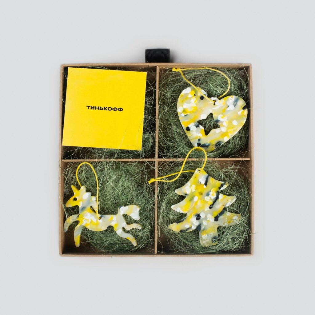 Тинькофф выпустил коллекцию новогодних игрушек из переработанного пластика