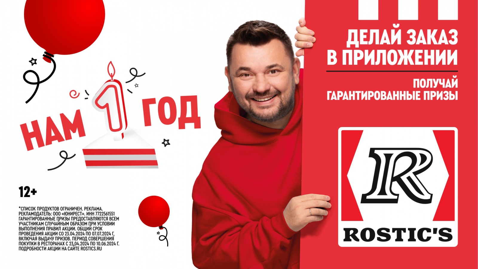 Rostic’s ко дню рождения сети запустил кампанию с лидером «Руки Вверх» — Сергеем Жуковым 23.04.2024 ·