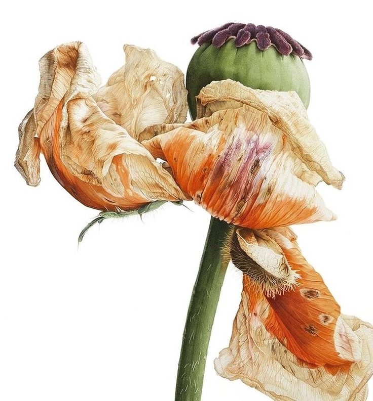 Приглушенные золотисто-жёлтые оттенки и тёплая розовая гамма — это мягкая и сладкая палитра, которая выглядит ещё более выразительно в увядающей цветочной гамме, дополняя странные формы. Продолжить палитру можно кремовым, зелёным и оранжевым.