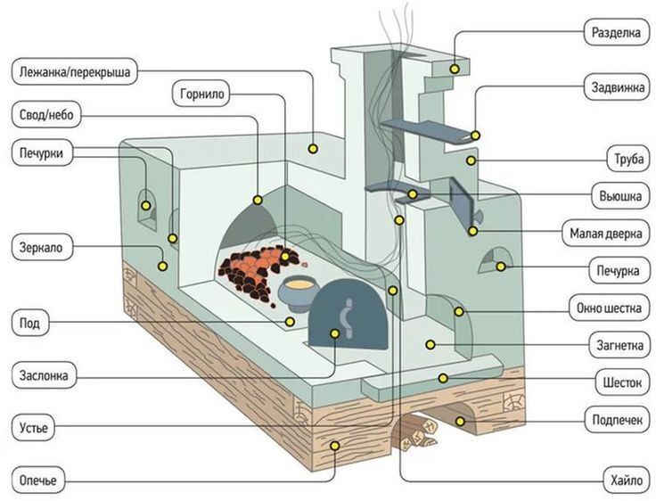 Под — дно горнила. Его поверхность должна быть гладкой и иметь наклон в сторону устья печи. На нем хозяйки выпекали хлеб.