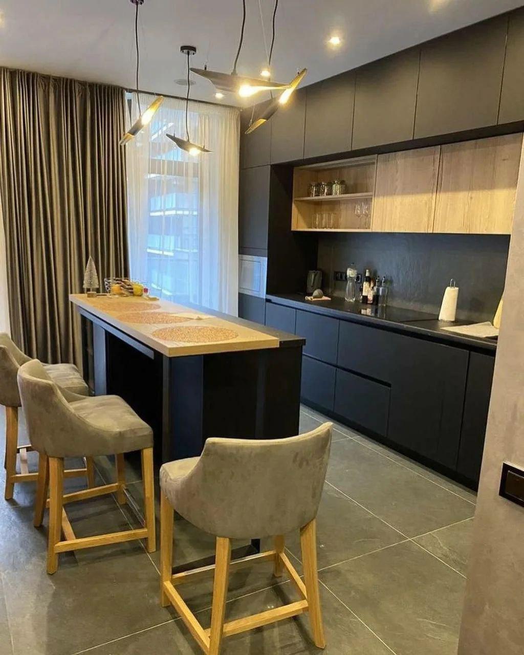 Этот интерьер пример того, как продуманность и вкус могут заменить услуги дизайнера. Пространство получилось лаконичным, современным и очень собранным: тёмные фасады, тёплое дерево и аккуратные световые акценты создают спокойную, уверенную атмосферу. Остров здесь не просто рабочая зона, а центр кухни место для завтраков, разговоров и тихих вечеров. Особенно приятно, что многие материалы были найдены со скидками: грамотный подход позволил уложиться в бюджет без потери качества и стиля.