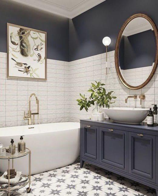 Контраст тёмных оттенков и светлой плитки делает интерьер выразительным и элегантным.