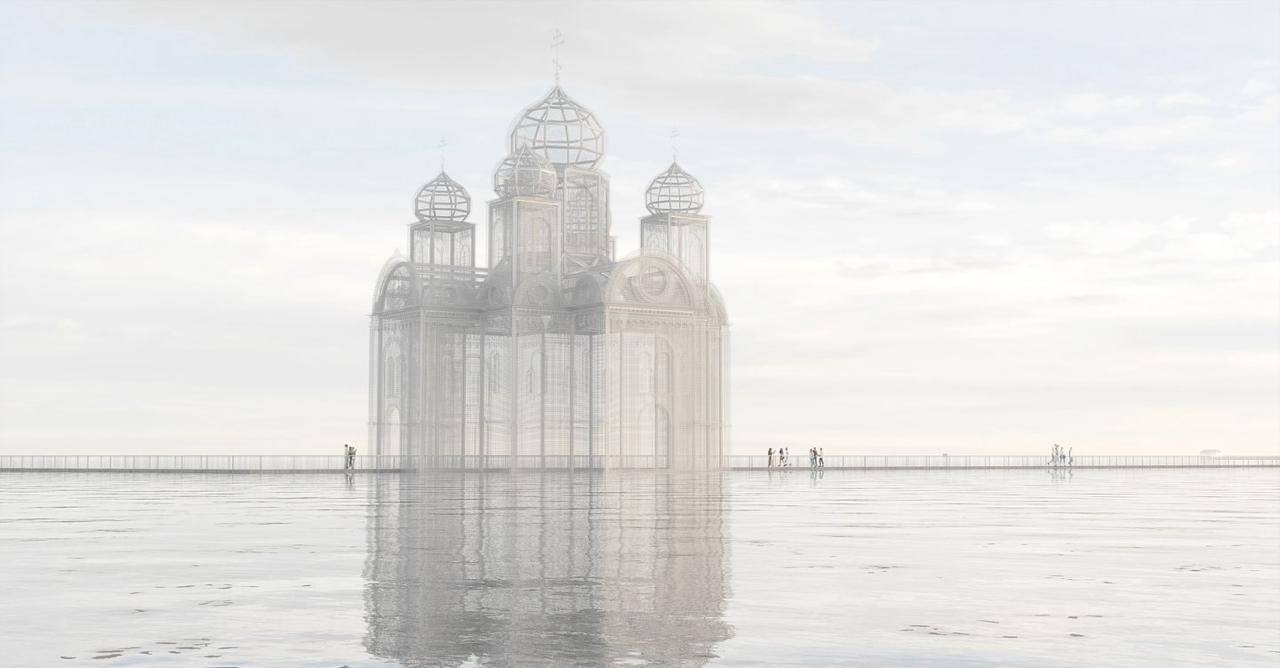 проект мемориала в честь затопленного города-призрака Молога (город был переселен и уничтожен при строительстве Рыбинской ГЭС).